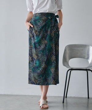 リゾート柄がエレガントなこのスカートは、パレオを巻いているようなデザインで広がりにくく、大人っぽい印象です。ポケットも付いているのがうれしいポイントです。