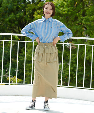 爽やかなブルーのストライプシャツは、シンプルながらも存在感のある一枚。軽やかな素材感がこれからの季節にぴったりで、インナーやアウターとの相性も抜群です。ソロテックスという機能素材を使っておりイージーケアでイチオシアイテムです。