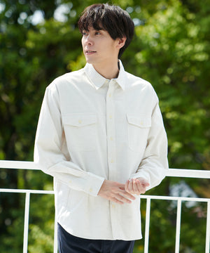 ・起毛感のある素材で暖かみを感じる王道カジュアルシャツ。