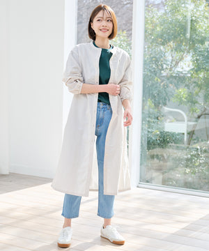 さらっとした肌触りが特徴のリネン素材のワンピースでレイヤードコーデ!