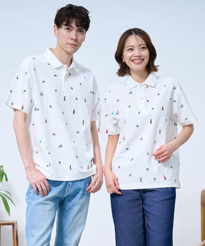 ベースがネイビーなので派手すぎず、デニムと白スニーカーでシンプルにまとめることで、柄の魅力を引き立てています。小さめバッグで程よい抜け感と軽さも演出。週末のお出かけや旅行にもおすすめです。