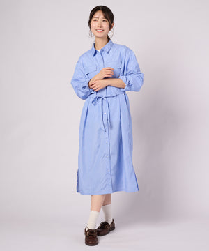 ストライプシャツワンピースに春らしくピンクをプラス! トップスは男女兼用で毛玉が出来にくくアイロンいらずのアイテムになってます✨ 1枚でもおしゃれに着れるアイテムです!