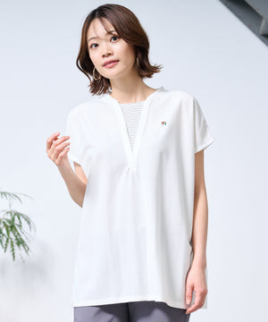 夏にピッタリなレイヤード風カットソーでカジュアルコーデ♪ ゆったりシルエットで体型カバーも◎ シンプルなカットソーなのでどんなボトムスともコーディネート可能です!