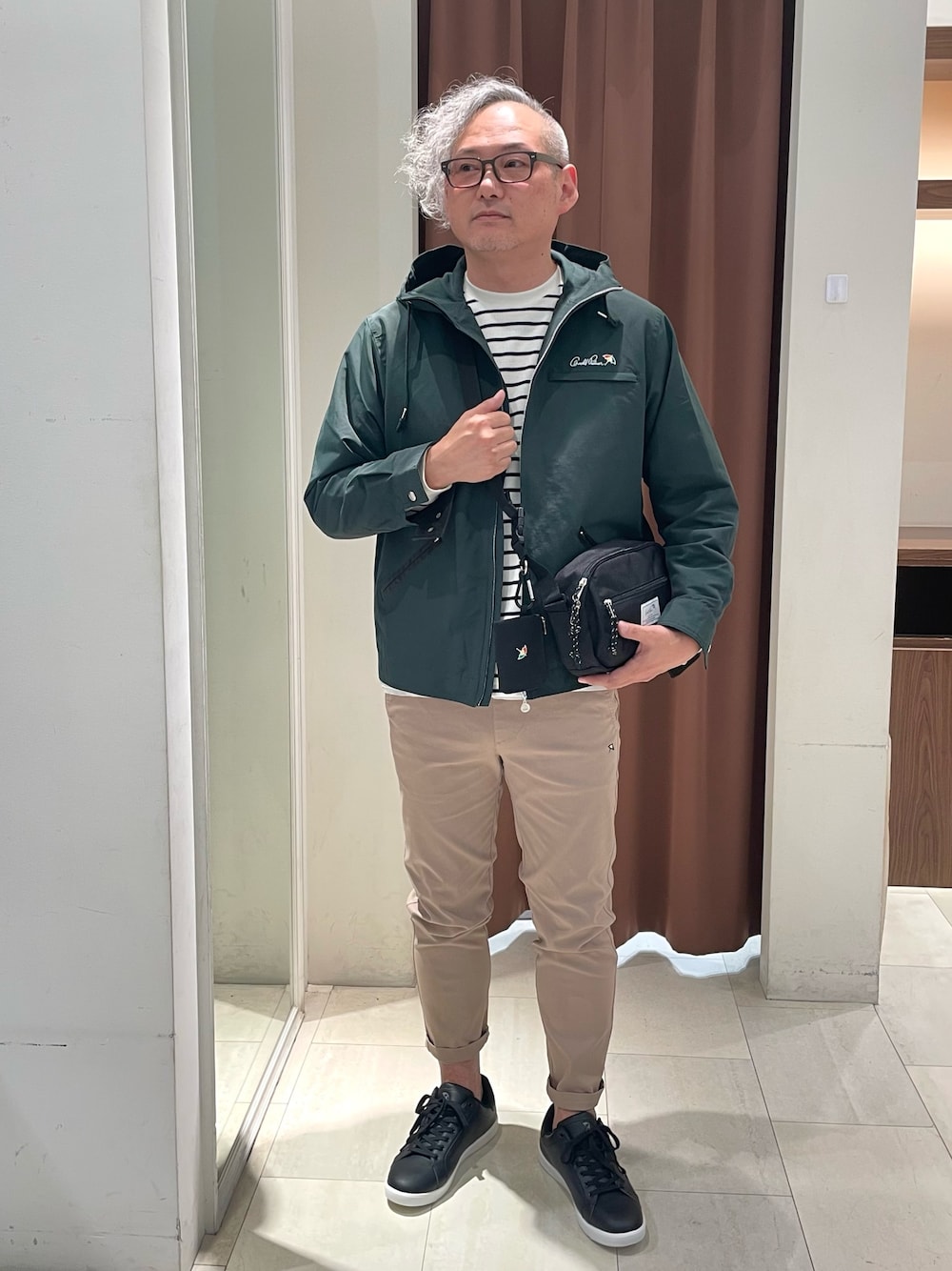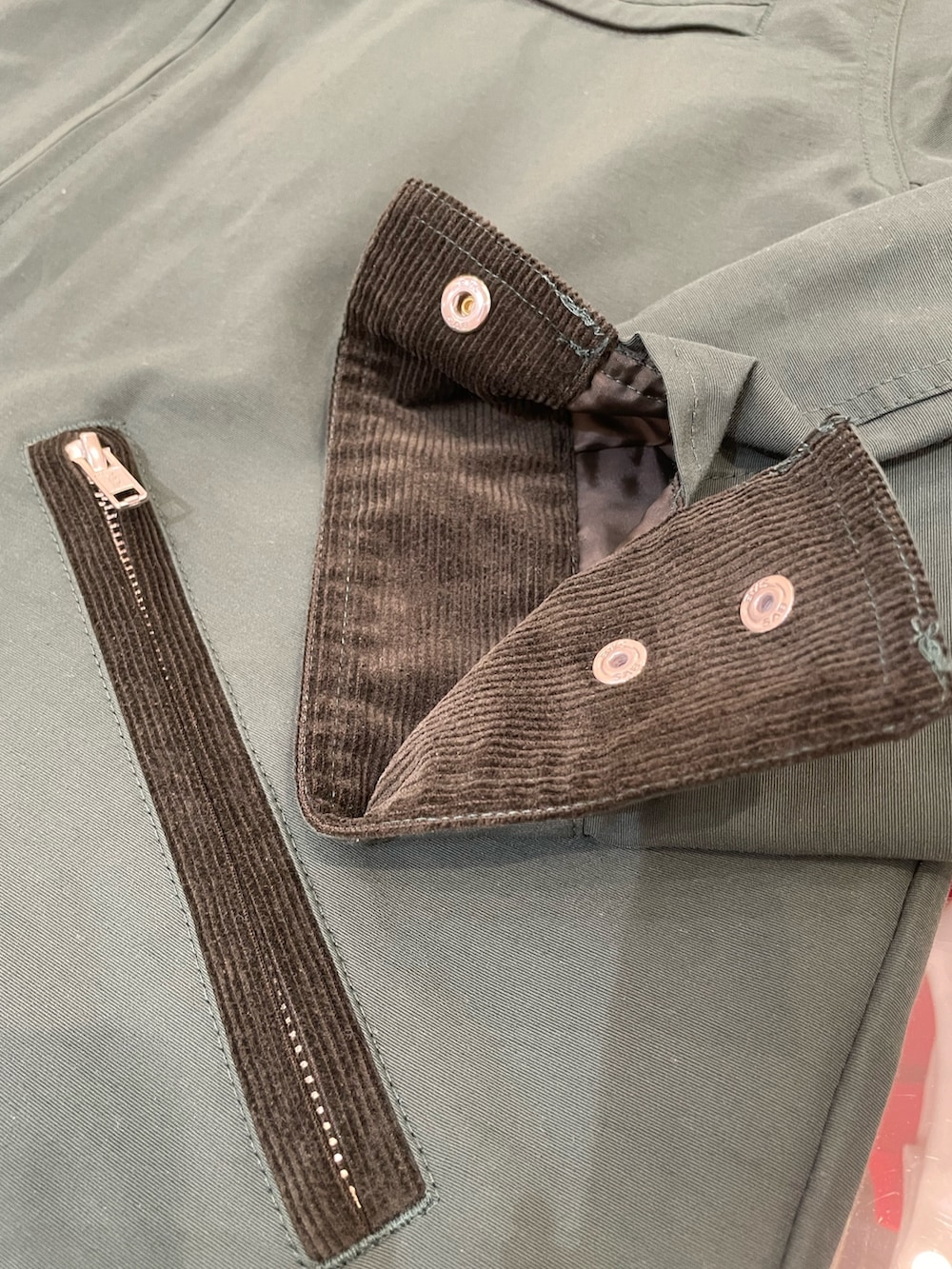 メンズアウターのご紹介★ トレンド感のあるワークジャケットをアレンジしたフードジャケットは、ポケットや袖口がコーデュロイになっておりオシャレなポイント! グリーンと黒の2色展開ですが、綺麗なグリーンはコーデの差し色としてお使い頂けます♪ 撥水性も備えている高機能アイテム。 今回は定番なボーダーTにストレッチ素材のパンツと合わせ、よりカジュアルなコーディネートにしてみました! これからの季節に抜群のアイテムですので是非チェックしてみてください👀