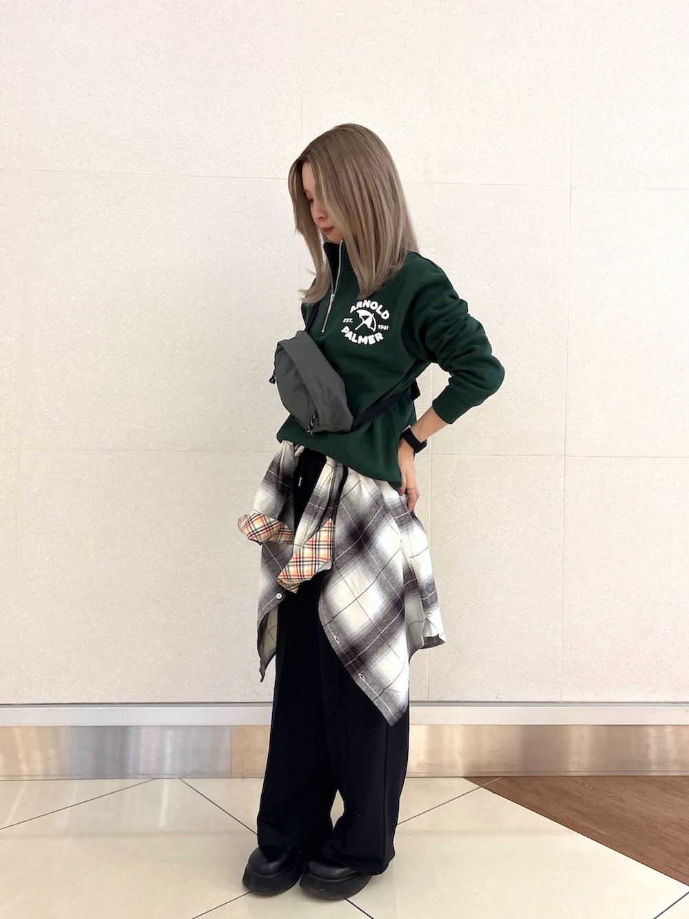 Arnold Palmer モラージュ菖蒲店158cm コメント シンプルな色使いでもシルエットとレイヤードで差をつけ、チェックシャツを腰巻きする事でトレンド感や季節感もプラスした欲張りコーデ✨ タグ Arnold Palmer 人気スタッフ 秋コーデ 投稿日:2025年10月19日 着用アイテム Arnold Palmer ネルチェック 長袖 シェア シャツ ¥6,600(税込) 着用サイズ:M 着用カラー:07アイボリー Arnold Palmer シェア アソート グラフィック ハーフジップスウェット ¥6,600(税込) 着用サイズ:L 着用カラー:60グリーン Arnold Palmer カットリラックス ストレートパンツ ¥5,500(税込) 着用サイズ:L 着用カラー:06ブラック Arnold Palmer ナイロンワッシャー ボディバッグ ¥6,600(税込) 着用カラー:05チャコールグレー 新しいコーディネート 158cm Arnold Palmerモラージュ菖蒲店 詳しく見る 152cm Arnold Palmerイオンモールレイクタウン店 詳しく見る 158cm Arnold Palmerモラージュ菖蒲店 詳しく見る 174cm Arnold Palmerイオンモール川口前川店 詳しく見る
