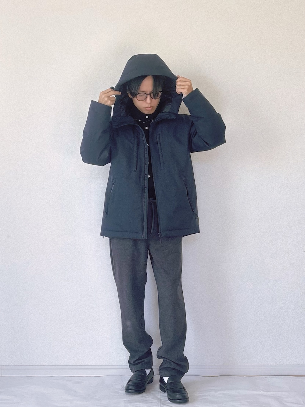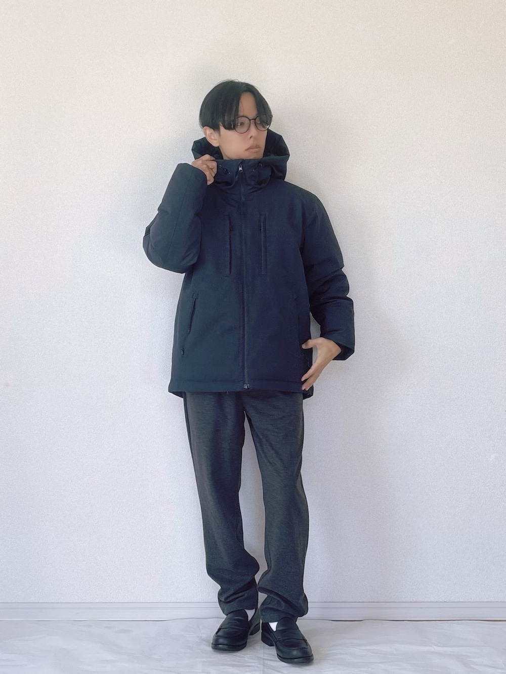 700フィルパワーのダウンジャケットを主役に、落ち着いた色使いでまとめた上品な冬のモノトーンコーデ。 しっかりとしたボリューム感と高い保温性が魅力の一着を、インナーのコーデュロイシャツで素材の深みをプラスし、シンプルながらも奥行きのあるスタイリングに仕上げています。 ボトムはスラックス風のシルエットで整え、足元のレザーシューズで全体を引き締めることで、大人らしい品の良さを演出。 冬のキレイめカジュアルをさりげなく格上げしてくれる、万能ダウンコーデです。