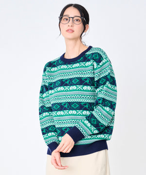 表はふんわり柔らかなボア素材、裏はアーノルドパーマーの傘柄キルトになったリバーシブルアウター。気分や気温で雰囲気を変えられる便利な一着です。 インナーにはノルディック柄のニットを合わせて季節感をプラス。 ボトムは裏フリースのイージーパンツ。(サイズはLサイズ着用)落ち着いたトーンでまとめ、バッグも同系色で統一することで、柔らかい色合いの大人カジュアルに仕上げています。 シンプルだけど冬らしさのある、デイリーに着やすいコーディネートです。