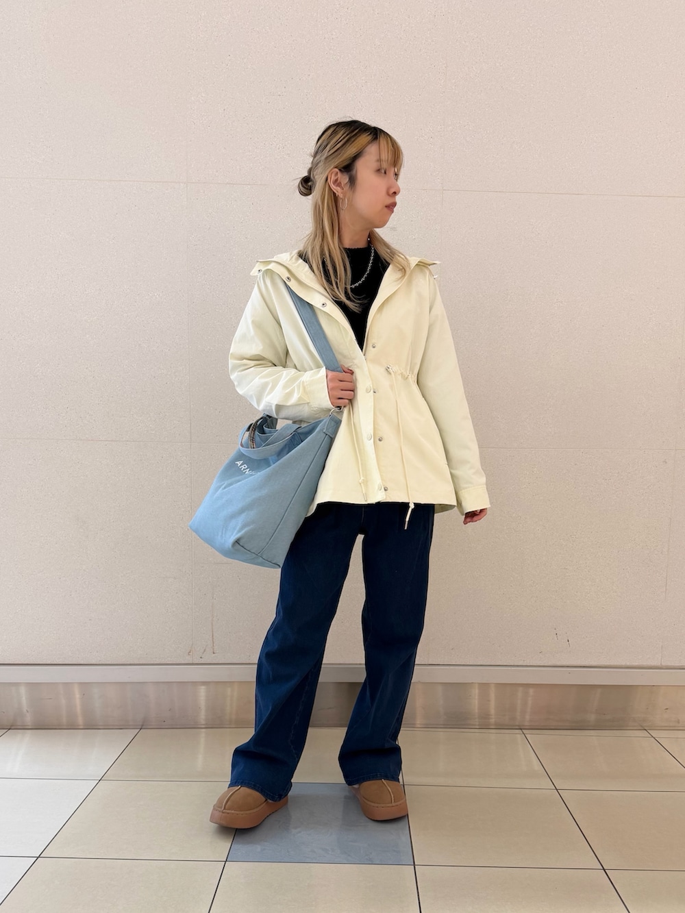 春に大活躍のライトジャケット! ウエストの部分を絞ることも出来るので スタイルアップ間違いなし✨ 綺麗めにもカジュアルにも着れるので色んなコーデに使ってみてください♪