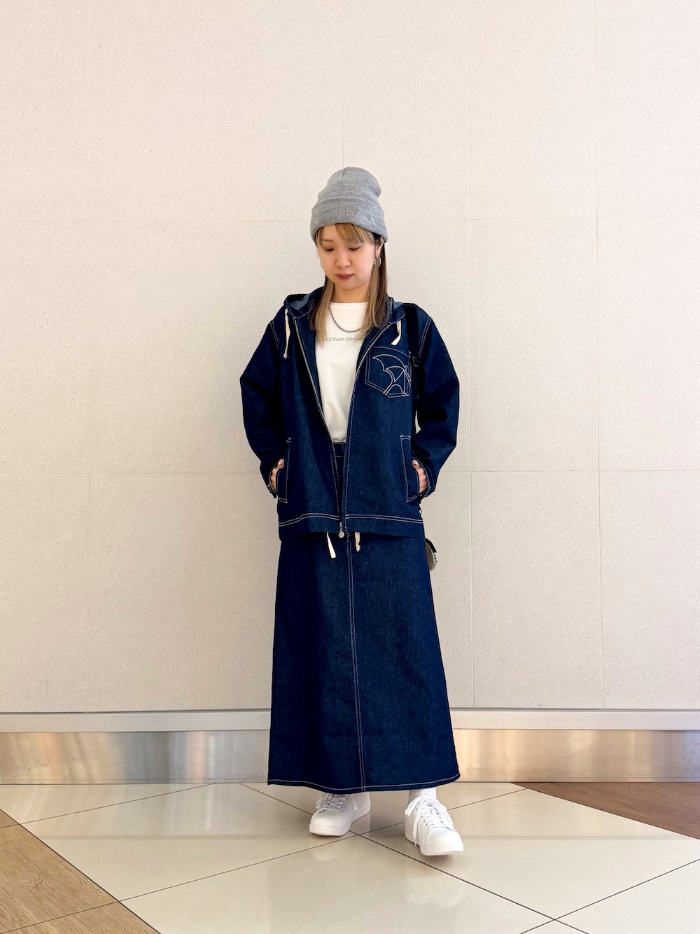 春らしいデニムジャケットとスカートでセットアップにしてみました! スカートはスリットが入ってるので動きやすく伸縮性もあります✨ ジャケットはなんでも合わせやすいので1枚持ってると大活躍! 春先まで着れるのも良いポイントです♪