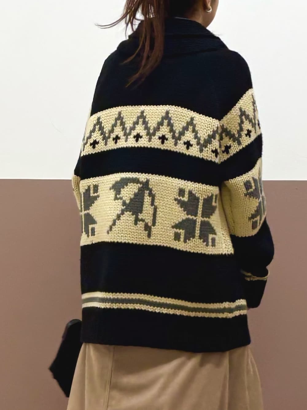 152センチでもゆるっと着れるカウチンニットジャケットは、大きな傘がトレードマーク♪ アーノルドパーマーらしさ全開です! ジャケットが腰まで隠れるのでスカート合わせでも暖かいです★ ちなみにベルトもメンズですが穴がたくさん開いているデザインなので女性でも付けられます◎
